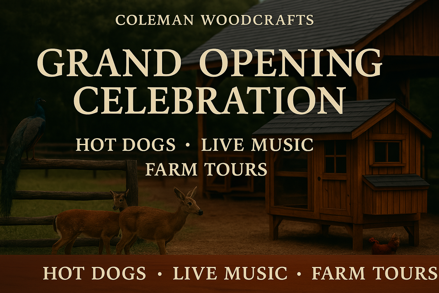 We’re proud to invite you to the Grand Opening of Coleman Woodcrafts, and we’d love for you to celebrate with us!